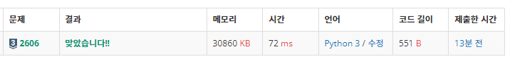 - visited list ์ ์ธ, temp list์ ์์ํ ์ปดํจํฐ ๋ฒํธ ๋ฃ์ด์ ์ ์ธ