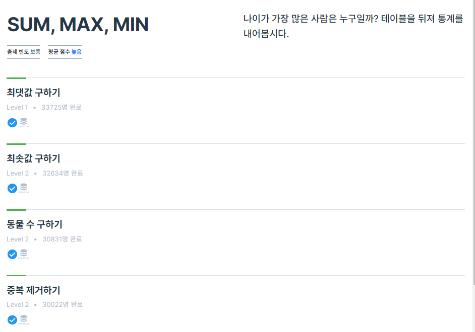문제 푼 것을 바탕으로 MAX, MIN, COUNT, DISTINCT를 정리해보자!