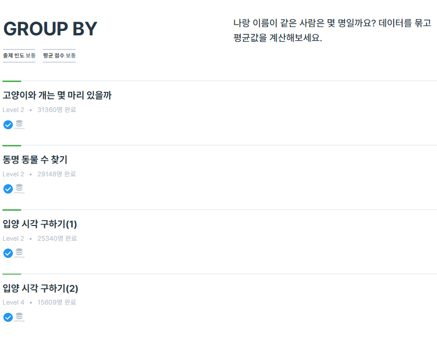 일단... 문제 푼 것을 바탕으로 GROUP BY에 대해 정리해보자!
