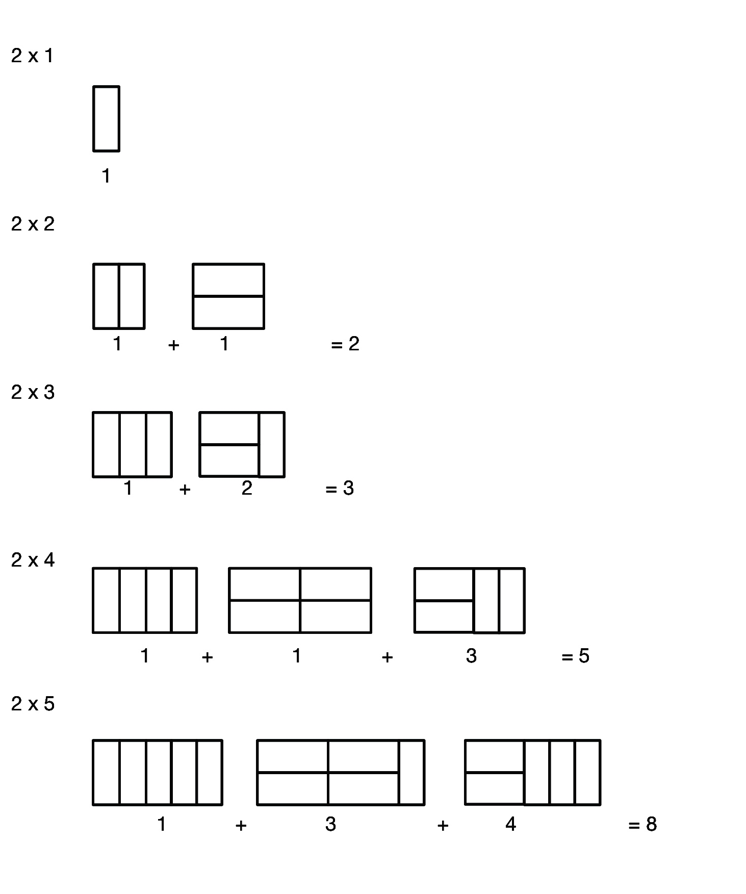 ์๋ ๊ทธ๋ฆผ์ 2 × 5 ํฌ๊ธฐ์ ์ง์ฌ๊ฐํ์ ์ฑ์ด ํ ๊ฐ์ง ๋ฐฉ๋ฒ์ ์์ด๋ค.