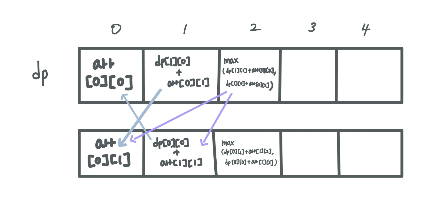dp[0].append(max(arr[0][j]+dp[1][j-1], arr[0][j]+dp[1][j-2]))