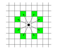 ์ฒด์คํ ์์ ํ ๋์ดํธ๊ฐ ๋์ฌ์ ธ ์๋ค. ๋์ดํธ๊ฐ ํ ๋ฒ์ ์ด๋ํ ์ ์๋ ์นธ์ ์๋ ๊ทธ๋ฆผ์ ๋์์๋ค. ๋์ดํธ๊ฐ ์ด๋ํ๋ ค๊ณ ํ๋ ์นธ์ด ์ฃผ์ด์ง๋ค. ๋์ดํธ๋ ๋ช ๋ฒ ์์ง์ด๋ฉด ์ด ์นธ์ผ๋ก ์ด๋ํ ์ ์์๊น?