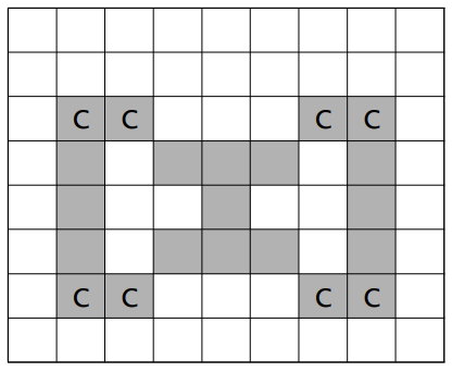 N×M์ ๋ชจ๋์ข ์ด ์์ ์์ฃผ ์์ ์น์ฆ๊ฐ <๊ทธ๋ฆผ 1>๊ณผ ๊ฐ์ด ํ์๋์ด ์๋ค. ๋จ, N ์ ์ธ๋ก ๊ฒฉ์์ ์์ด๊ณ , M ์ ๊ฐ๋ก ๊ฒฉ์์ ์์ด๋ค. ์ด ์น์ฆ๋ ๋๋ ๋ณด๊ด์ ํด์ผ๋ง ํ๋๋ฐ ์ค๋ด์จ๋์ ๋ด์ด๋์ผ๋ฉด ๊ณต๊ธฐ์ ์ ์ดํ์ฌ ์ฒ์ฒํ ๋ น๋๋ค. ๊ทธ๋ฐ๋ฐ ์ด๋ฌํ ๋ชจ๋์ข ์ด ๋ชจ์์ ์น์ฆ์์ ๊ฐ ์น์ฆ ๊ฒฉ์(์ ์ ์ ์ฌ๊ฐํ ๋ชจ์)์ 4 ๋ณ ์ค์์ ์ ์ด๋ 2 ๋ณ ์ด์์ด ์ค๋ด์จ๋์ ๊ณต๊ธฐ์ ์ ์ดํ ๊ฒ์ ์ ํํ ํ ์๊ฐ ๋ง์ ๋ น์ ์์ด์ ธ ๋ฒ๋ฆฐ๋ค. ๋ฐ๋ผ์ ์๋ <๊ทธ๋ฆผ 1> ๋ชจ์๊ณผ ๊ฐ์ ์น์ฆ(ํ์์ผ๋ก ํ์๋ ๋ถ๋ถ)๋ผ๋ฉด C๋ก ํ์๋ ๋ชจ๋ ์น์ฆ ๊ฒฉ์๋ ํ ์๊ฐ ํ์ ์ฌ๋ผ์ง๋ค.