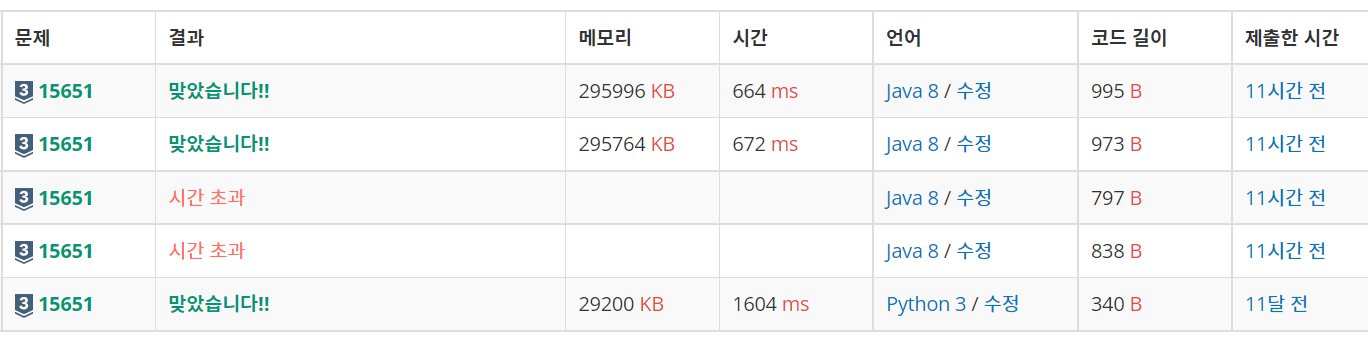 ์ถ๋ ฅ๋ฌธ์ ์์ฑํ๋๋ฐ์ ์๊ฐ ์ด๊ณผ๊ฐ ๋ฐ์ํ ๊ฒ์ด์๋ค. BufferedWriter๋ฅผ ์ฌ์ฉํจ์ผ๋ก์จ ์๊ฐ ์ด๊ณผ๋ฅผ ํด๊ฒฐํ ์ ์์๋ค.