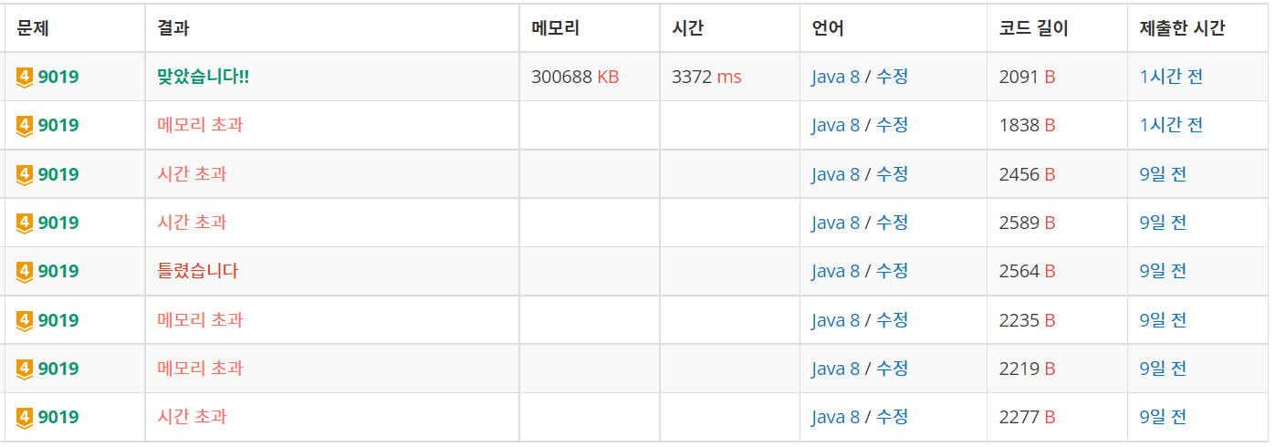 그 후에는 메모리 초과가 문제였다. 이 부분은 잘 몰라서 찾아보니 queue 초기화와 중복 check 때문인 것 같았다. 그래서 queue를 clear를 해주었으며, 레지스터 값이 0 이상 10000 미만으로 정해져 있으므로 배열을 통해 중복 확인을 해주는 것으로 코드를 수정하였다. 그 결과 통과할 수 있었다.