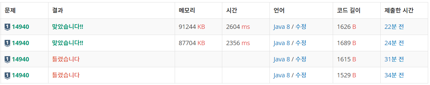 문제(출처: https://www.acmicpc.net/problem/14940)