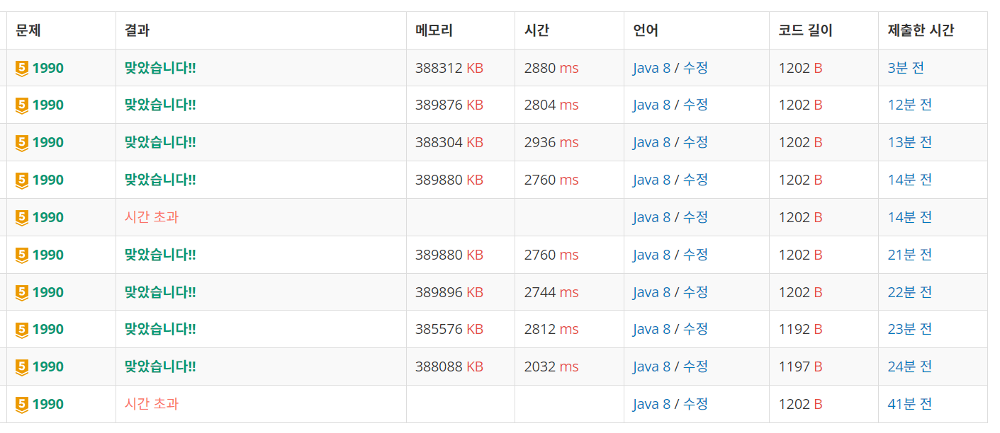 * ์ฒ์ ์๊ฐ์ด๊ณผํ ์ฝ๋๋ฅผ ์์ ์์ด ์ ์ถํ๋๋ ํต๊ณผํ๋ค.