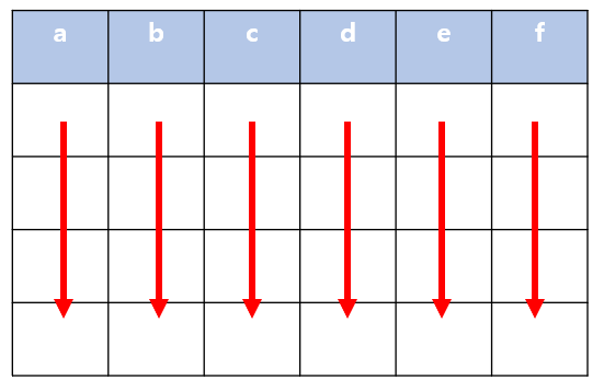 ๋ง์ฝ ์ฃผ์ด์ง ํค๊ฐ cedfba๋ผ๋ฉด ์ํธ๋ฌธ์ ๊ตฌํ ๋ ์ ๋ ฌ๋ ํค ๊ฐ์ abcdef๊ฐ ๋๋ฉฐ ์ํธ๋ฌธ์ ๋ค์๊ณผ ๊ฐ์ ๋ฐฉํฅ์ผ๋ก ์ฑ์ด๋ค.