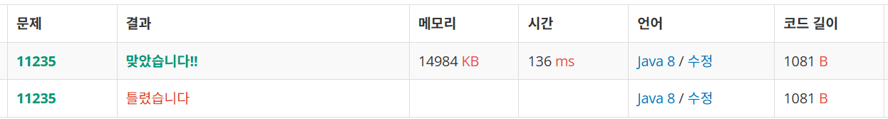 문제(출처: https://www.acmicpc.net/problem/11235)