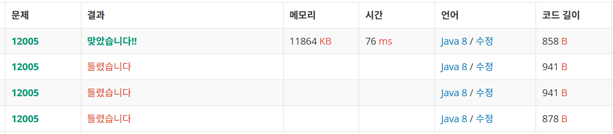 문제(출처: https://www.acmicpc.net/problem/12005)