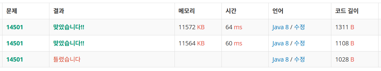 ๋ฌธ์ (์ถ์ฒ: https://www.acmicpc.net/problem/14501)
