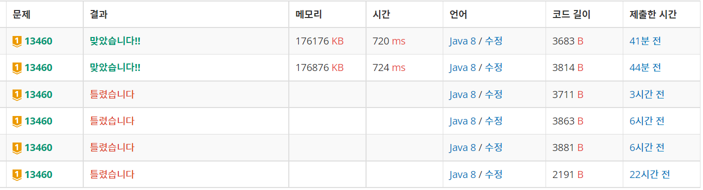 [Baekjoon] 13460_๊ตฌ์ฌ ํ์ถ 2