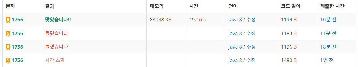 - ์๊ฐ ์ด๊ณผ ์ฝ๋ (Java)