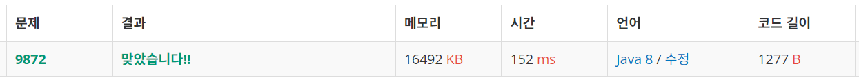 문제(출처: https://www.acmicpc.net/problem/9872)