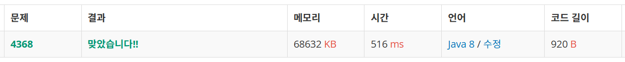 문제(출처: https://www.acmicpc.net/problem/4368)